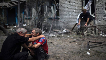 Helping refugees in Eastern Ukraine. "Food for Life" volunteers feed refugees.